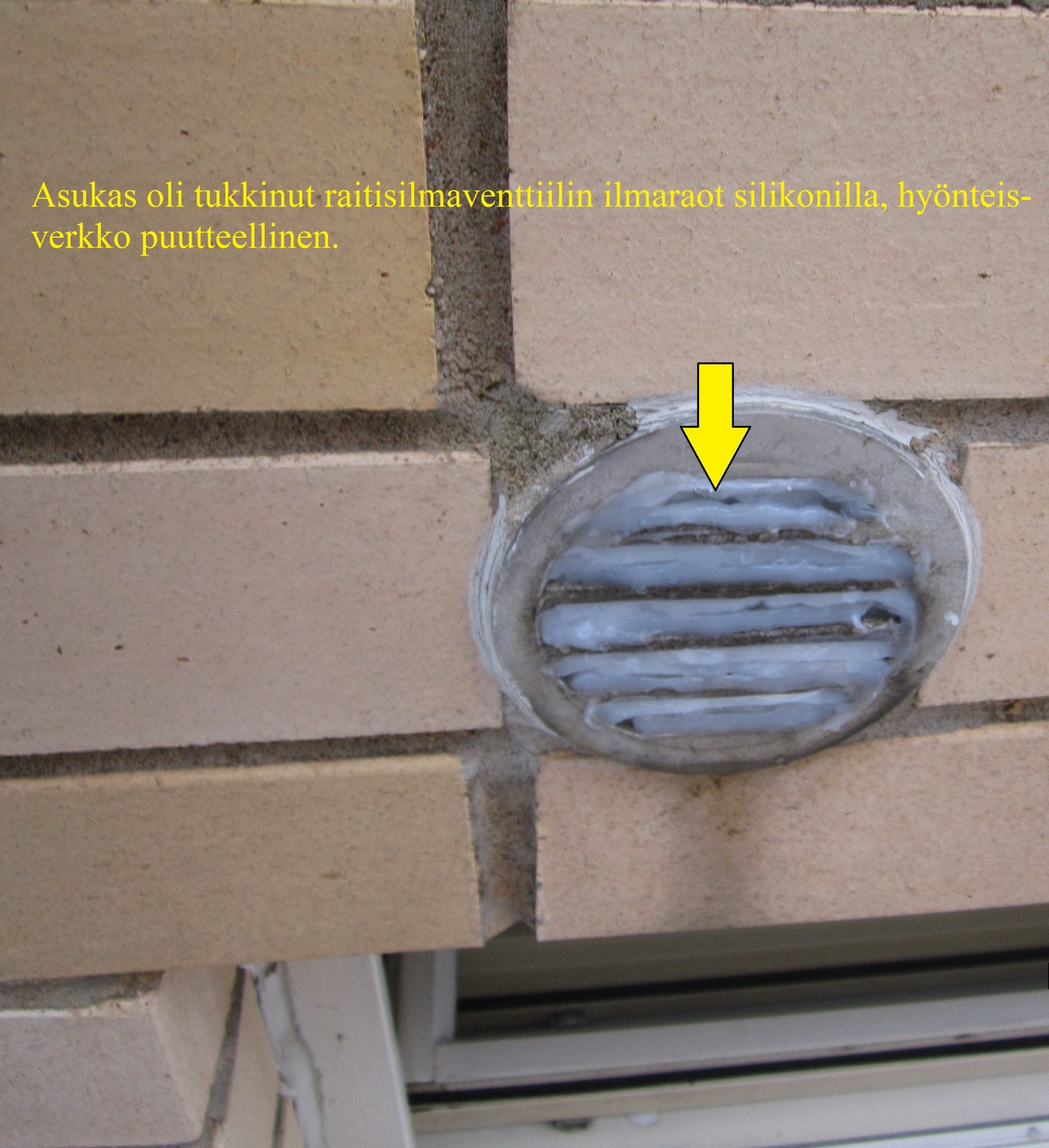 Ulkopuolen venttiilin hyönteisverkko oli rikki.