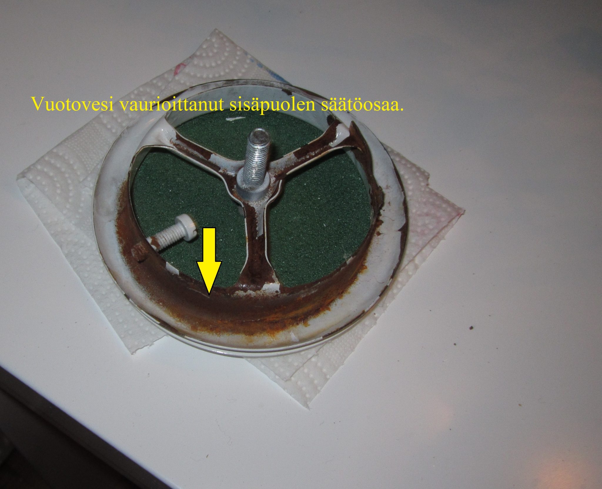 Venttiilin tiivistykset olivat hivenen halkeilleet ulkopuolen venttiilikehyksen ympärillä.