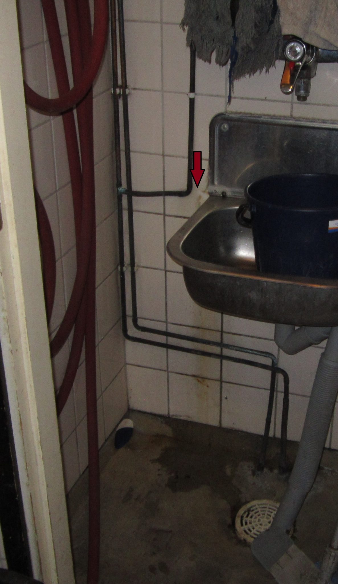 Vesi, vesivuoto siivouskomerossa